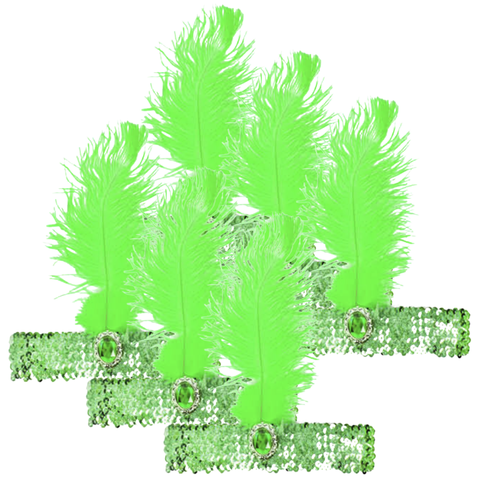 6x 1920s FLAPPER HEADBAND Headpiece Feather Sequin Charleston Costume Party BULK - Green
