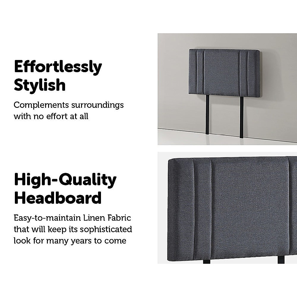 Linen Fabric Single Bed Deluxe Headboard Bedhead - Grey