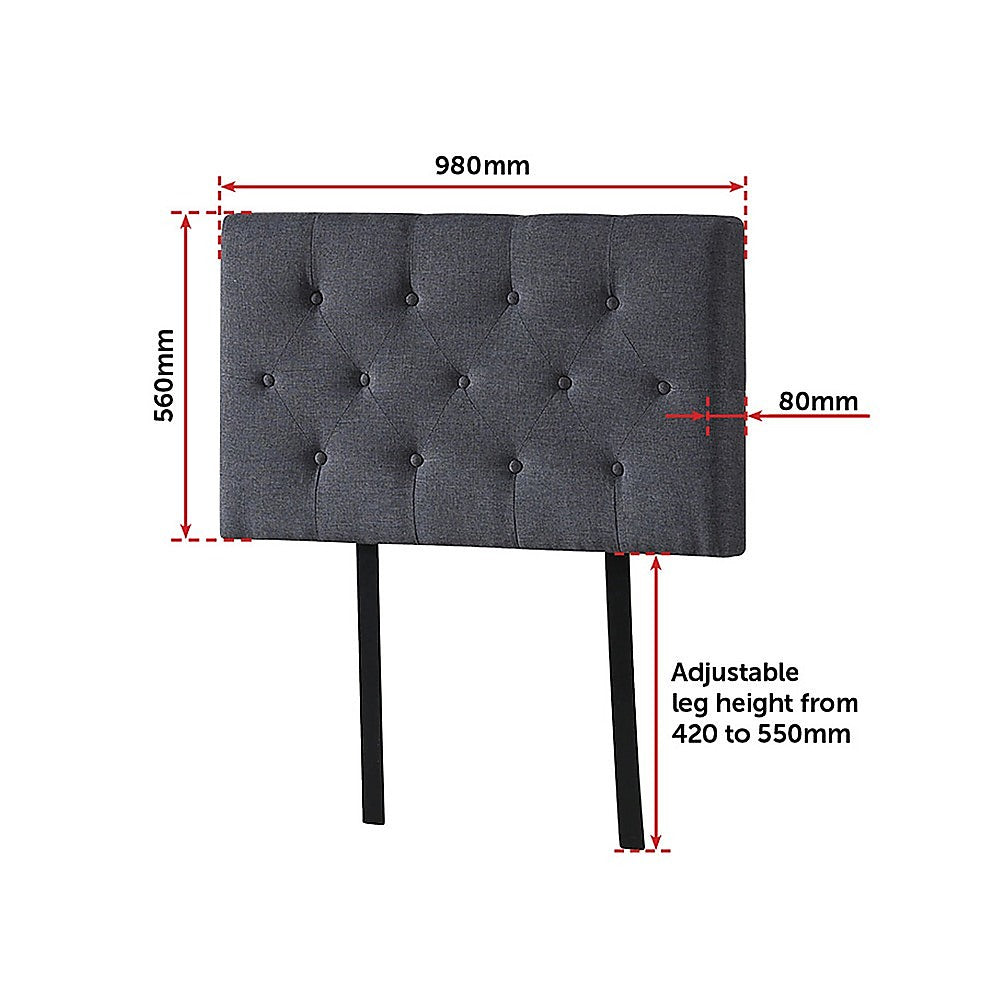 Linen Fabric Single Bed Deluxe Headboard Bedhead - Grey