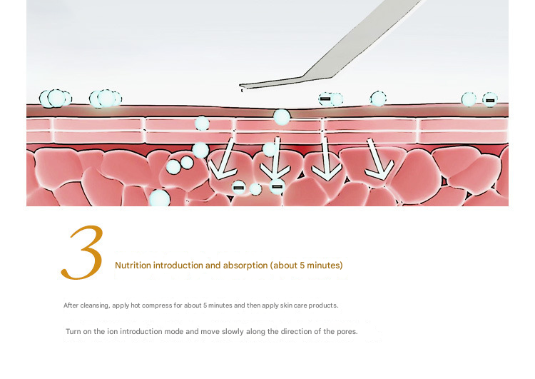 Negative ions help to deliver the active ingredients from your skincare products deep into the skin's layers for superior absorption.
